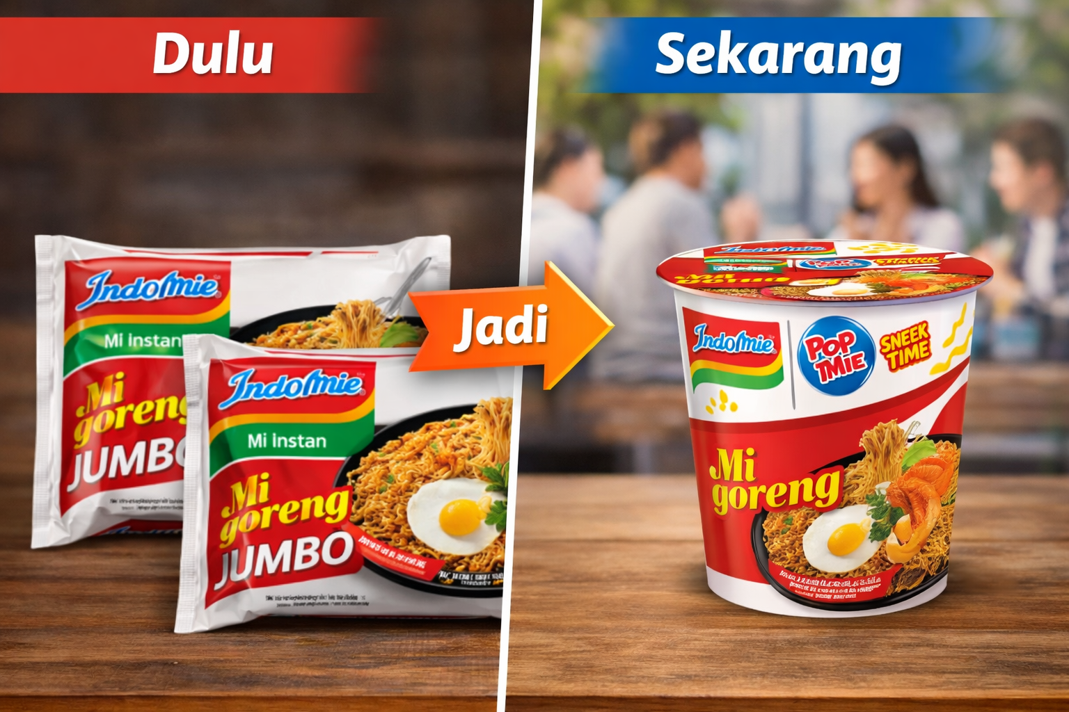Indomie bukan hanya sukses karena rasanya, tapi juga karena keberaniannya menghadirkan format kemasan yang mengubah cara konsumsi. Salah satu langkah paling berdampak adalah hadirnya Pop Mie—mie instan dalam kemasan cup.